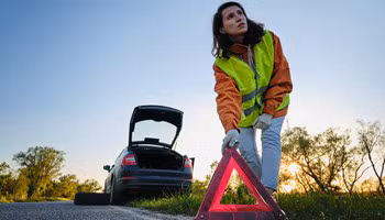 - Plaats je gevarendriehoek en trek een fluohesje aan.